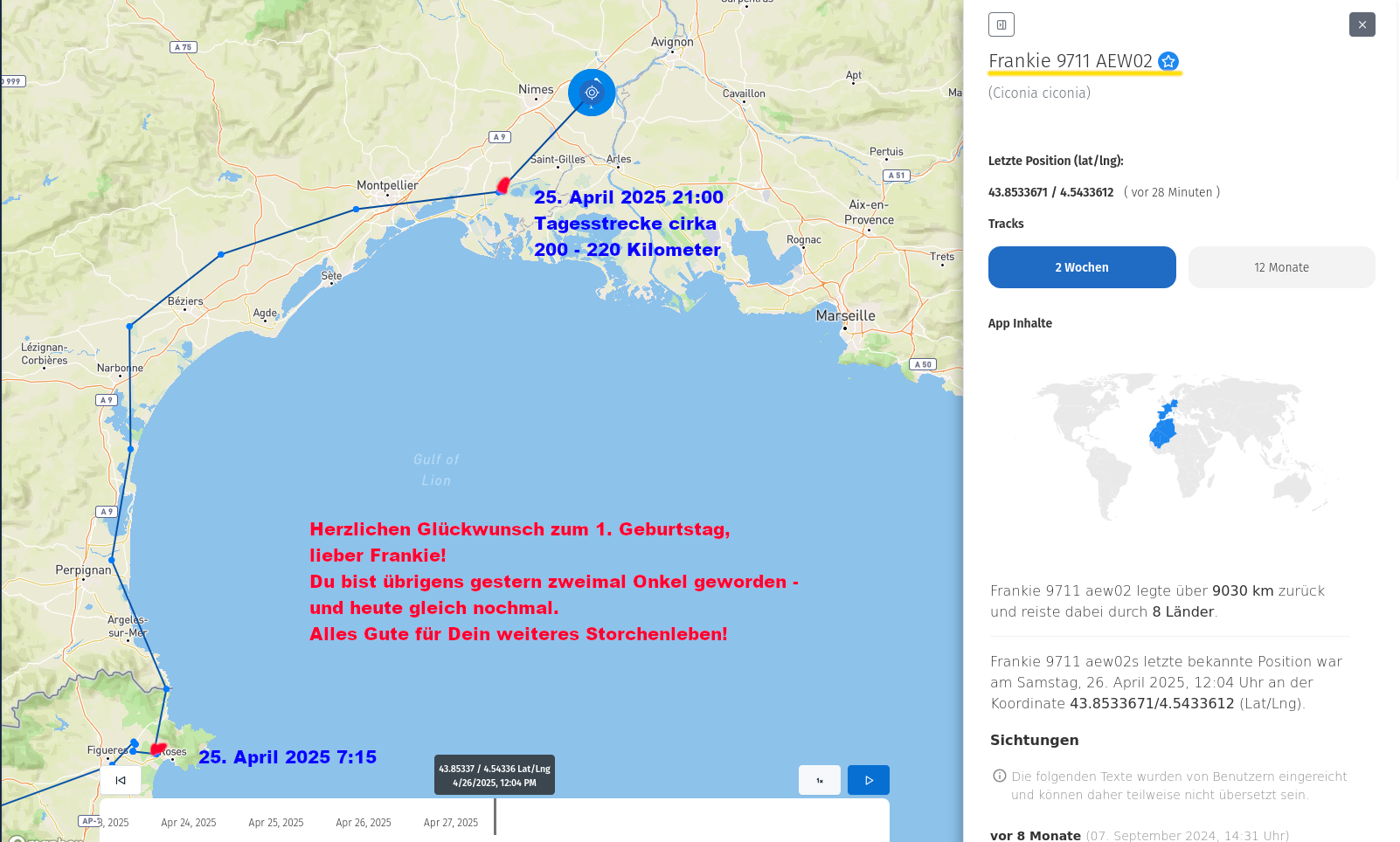 Ich nehme das zum Anlass, abschließend den Blick auf wenige Sender-Störche zu richten, die ich länger verfolgt habe.