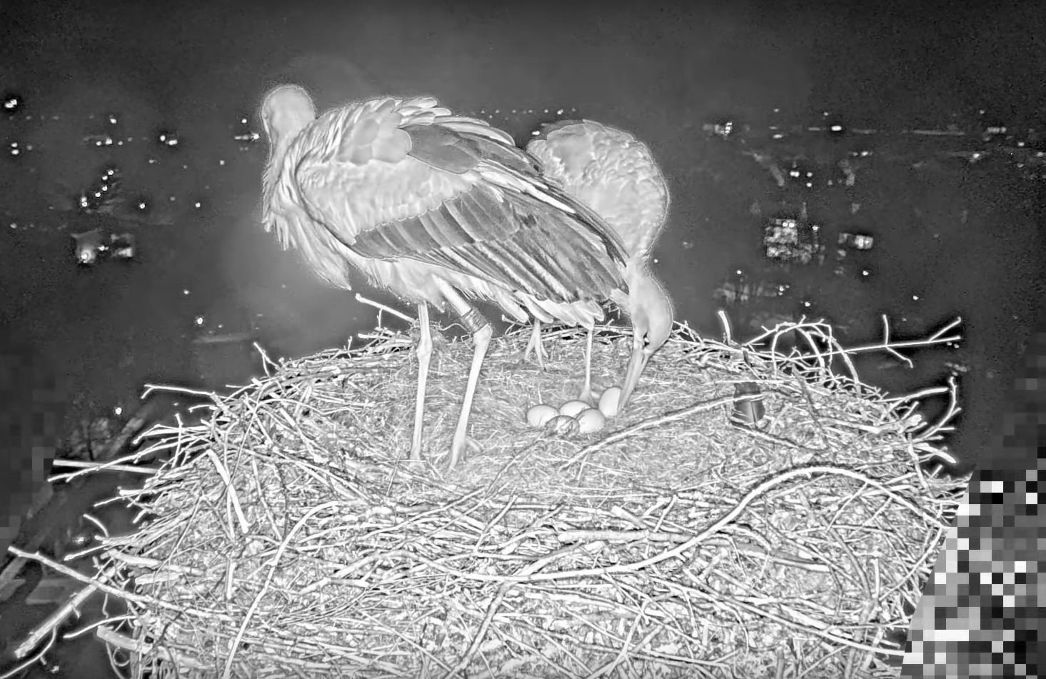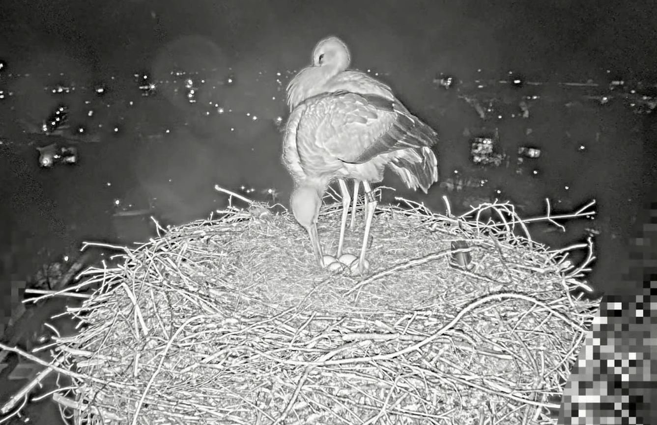 Und wenn man dann noch einen Storchengatten sein eigen nennt, der das Brüten extrem ernst nimmt, wie soll man ihm dann erklären, dass ein fünftes Ei unterwegs ist und er jetzt nicht die ganze Nacht auf dem Gelege sitzen bleiben kann?