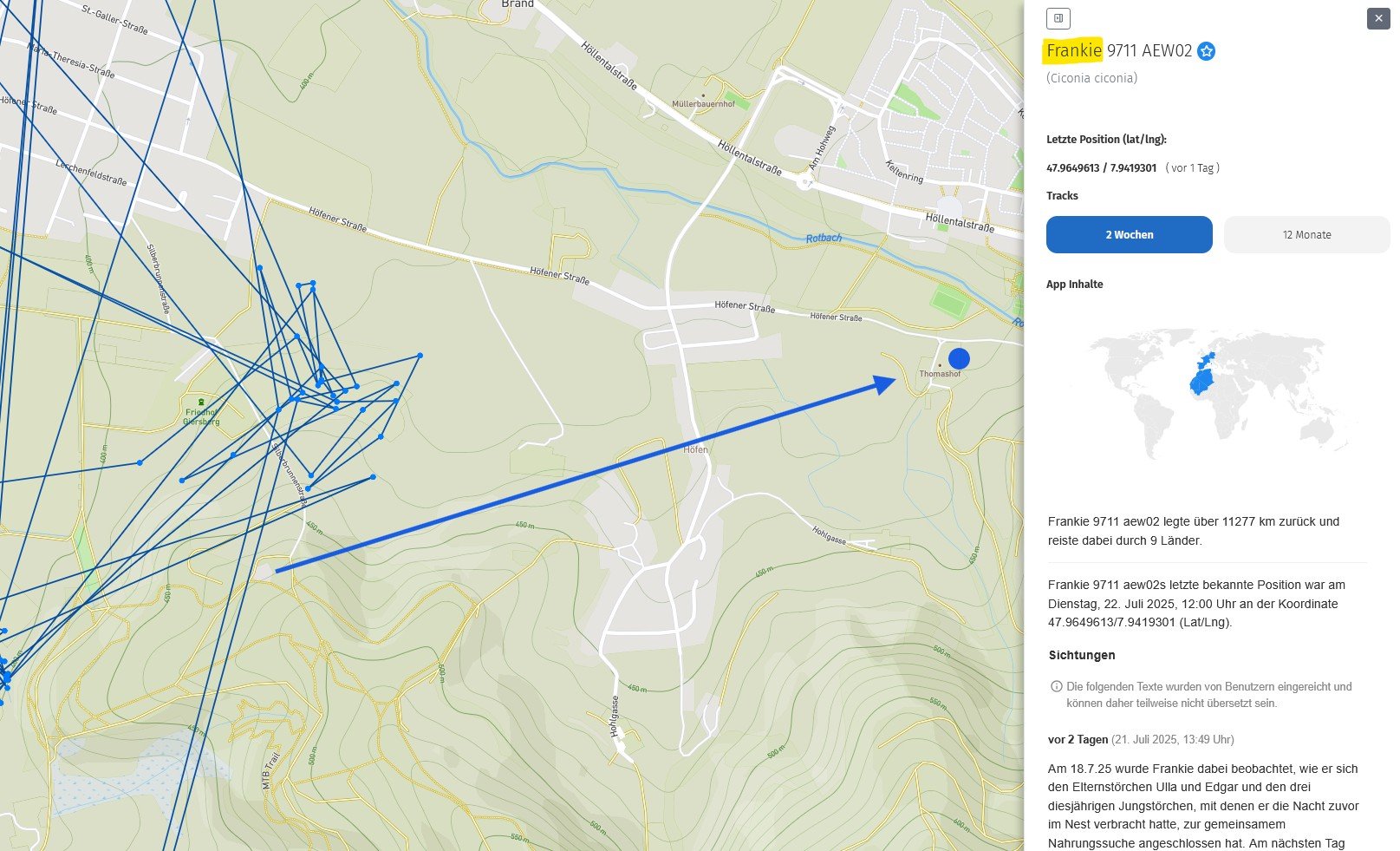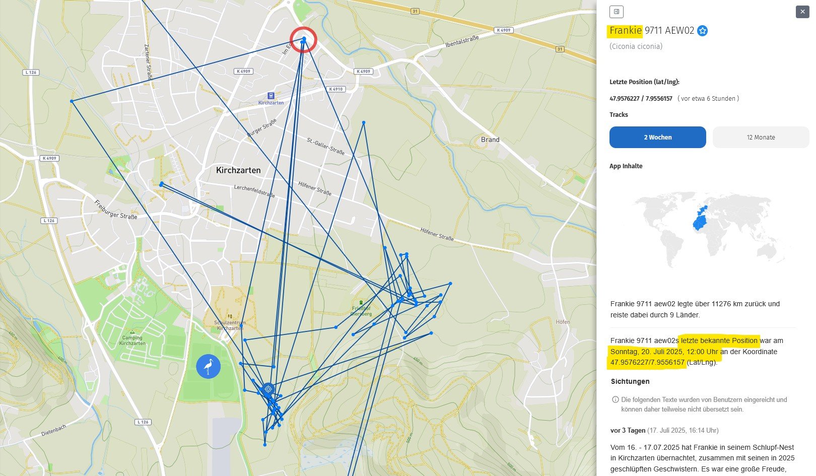 Und unser lieber Frankie (AEW02) ist wohl immer noch in Kirchzarten.