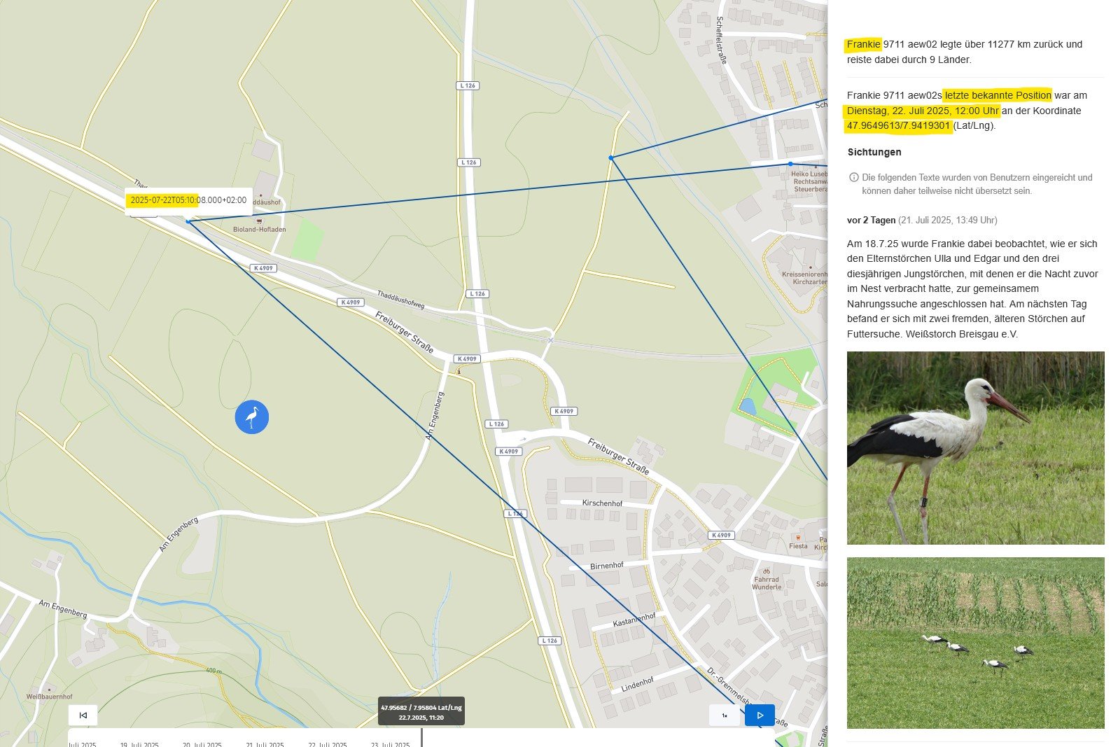 Dann war das wohl doch nicht Frankie, sondern ein anderer rechts beringter Storch ...