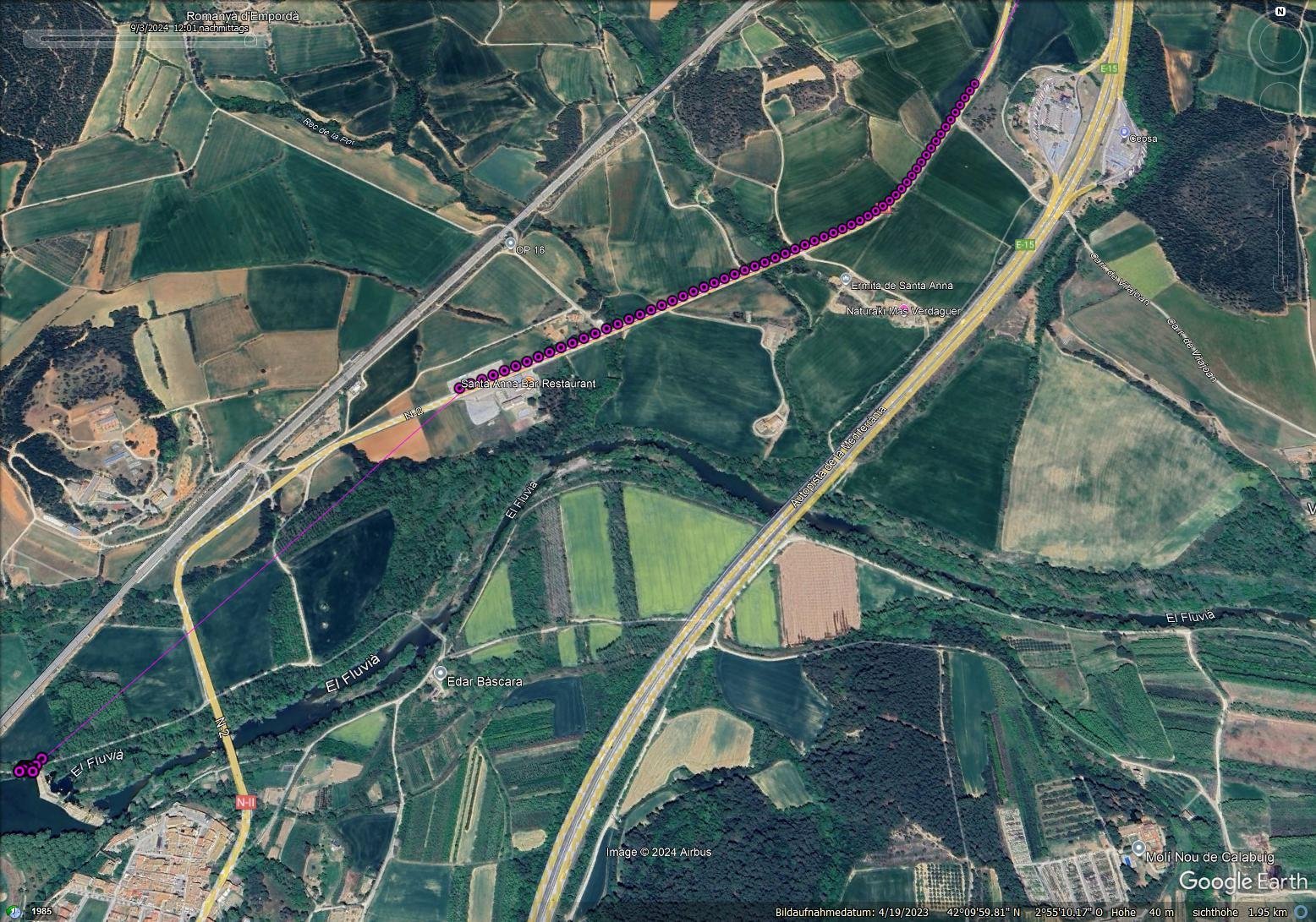 ... das Kopfkino geht weiter. Aus der Nachlieferung der Daten ist ersichtlich, dass B r i t t a nach der letzten Ortung in Bascara rund 1,5 km exakt dem Straßenverlauf der N2 nordwärts gefolgt ist bei relativ konstanter Geschwindigkeit und Höhe.... auch wieder nur Zufall?