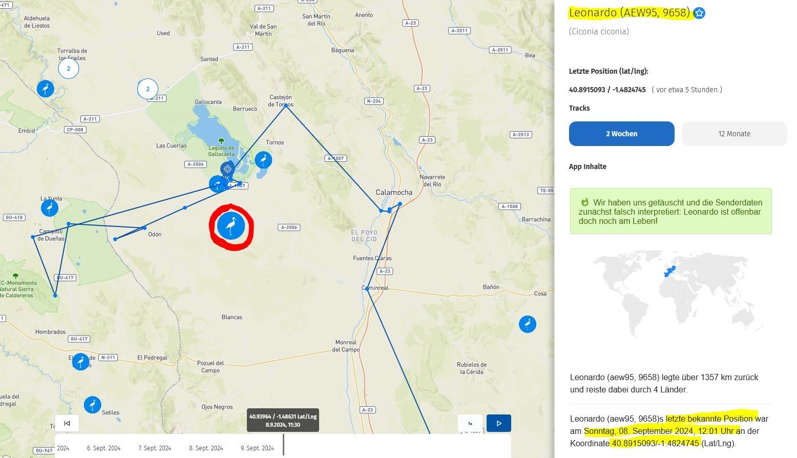 Re: Störche auf Reisen begleiten mit der AnimalTracker-App 2024