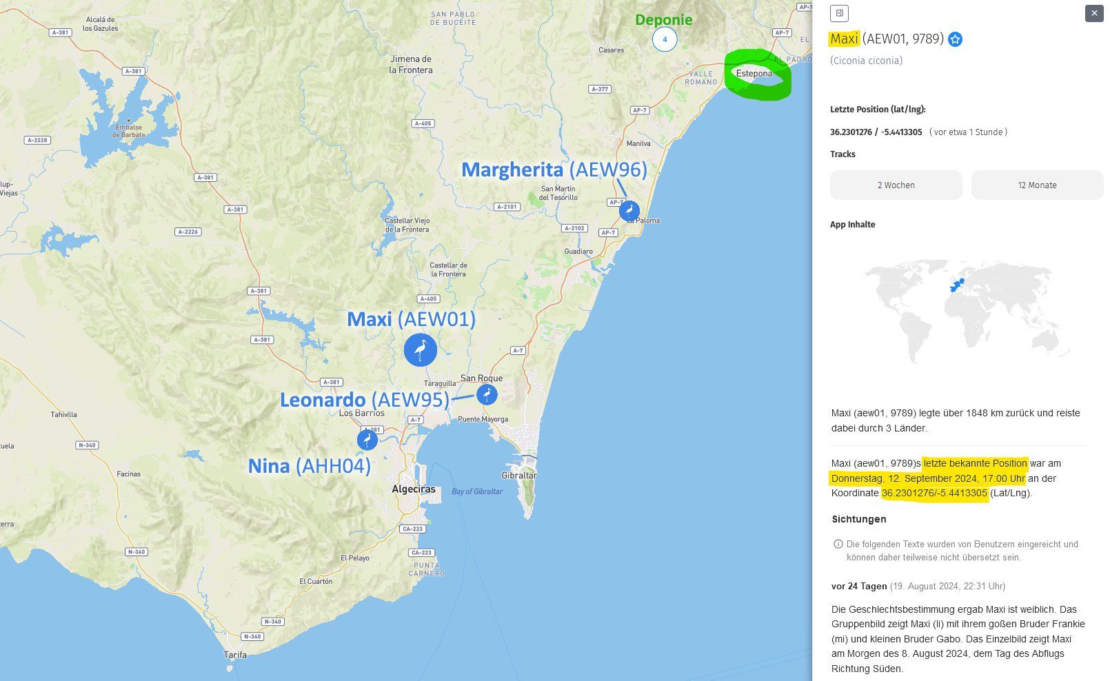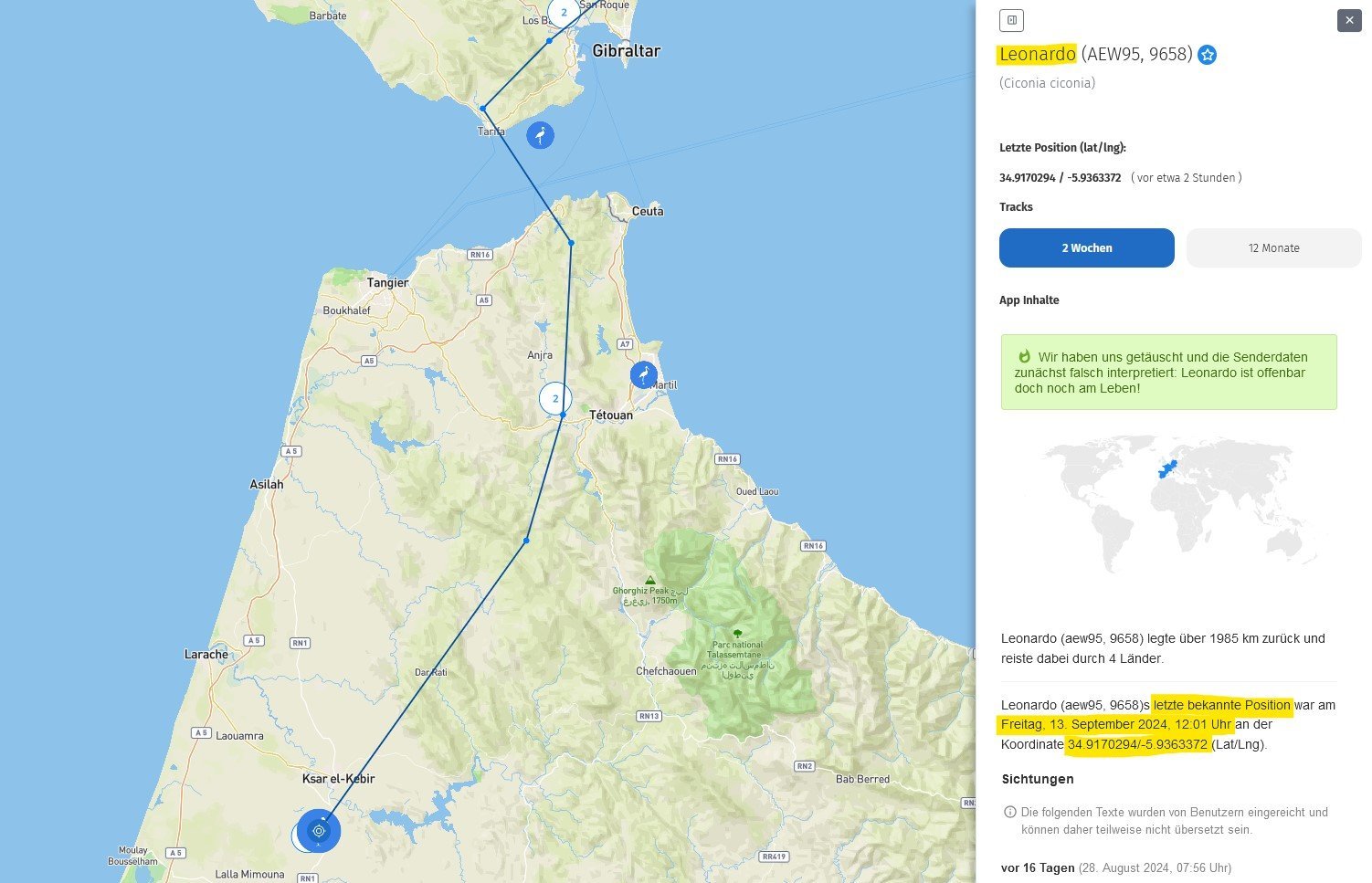 Denn seit vorgestern hat sich doch so einiges getan bei unseren reisenden Jungstörchen ... achso, außer bei Maxi natürlich ...