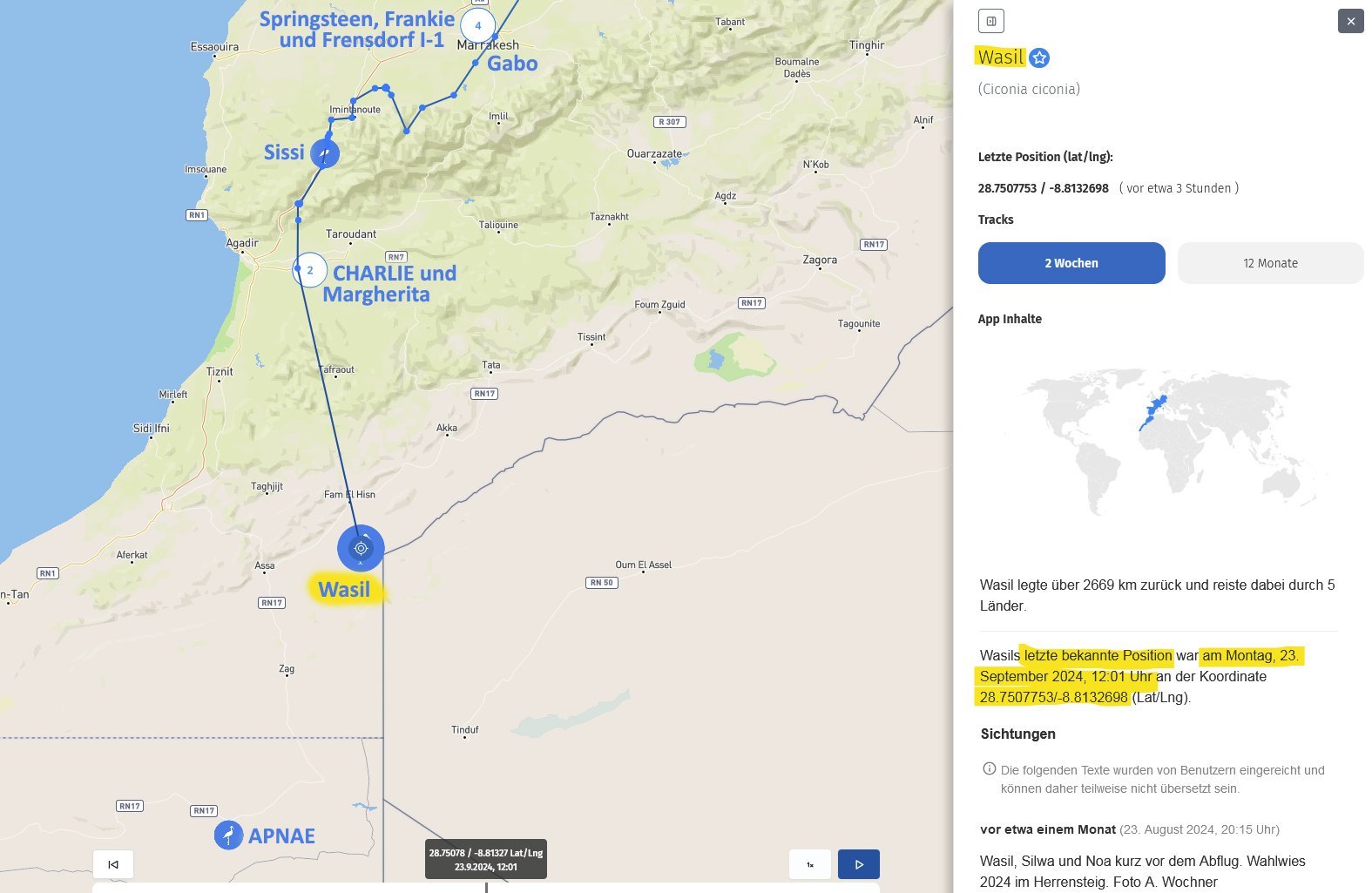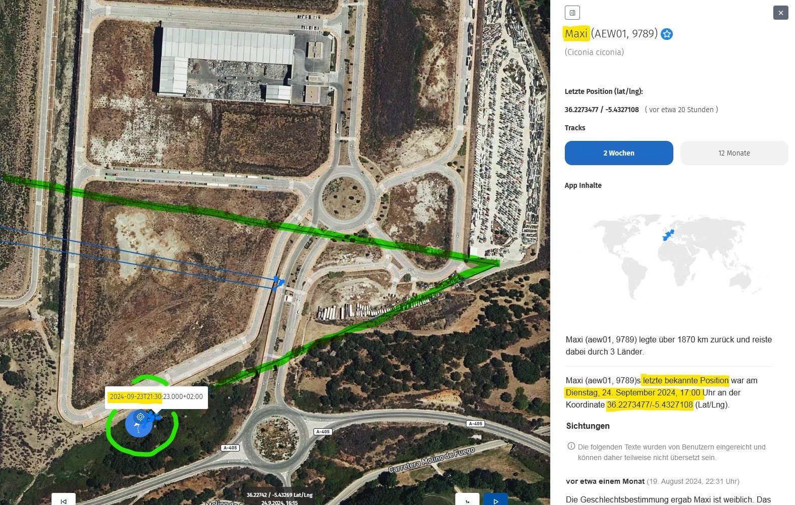 Re: Störche auf Reisen begleiten mit der AnimalTracker-App 2024