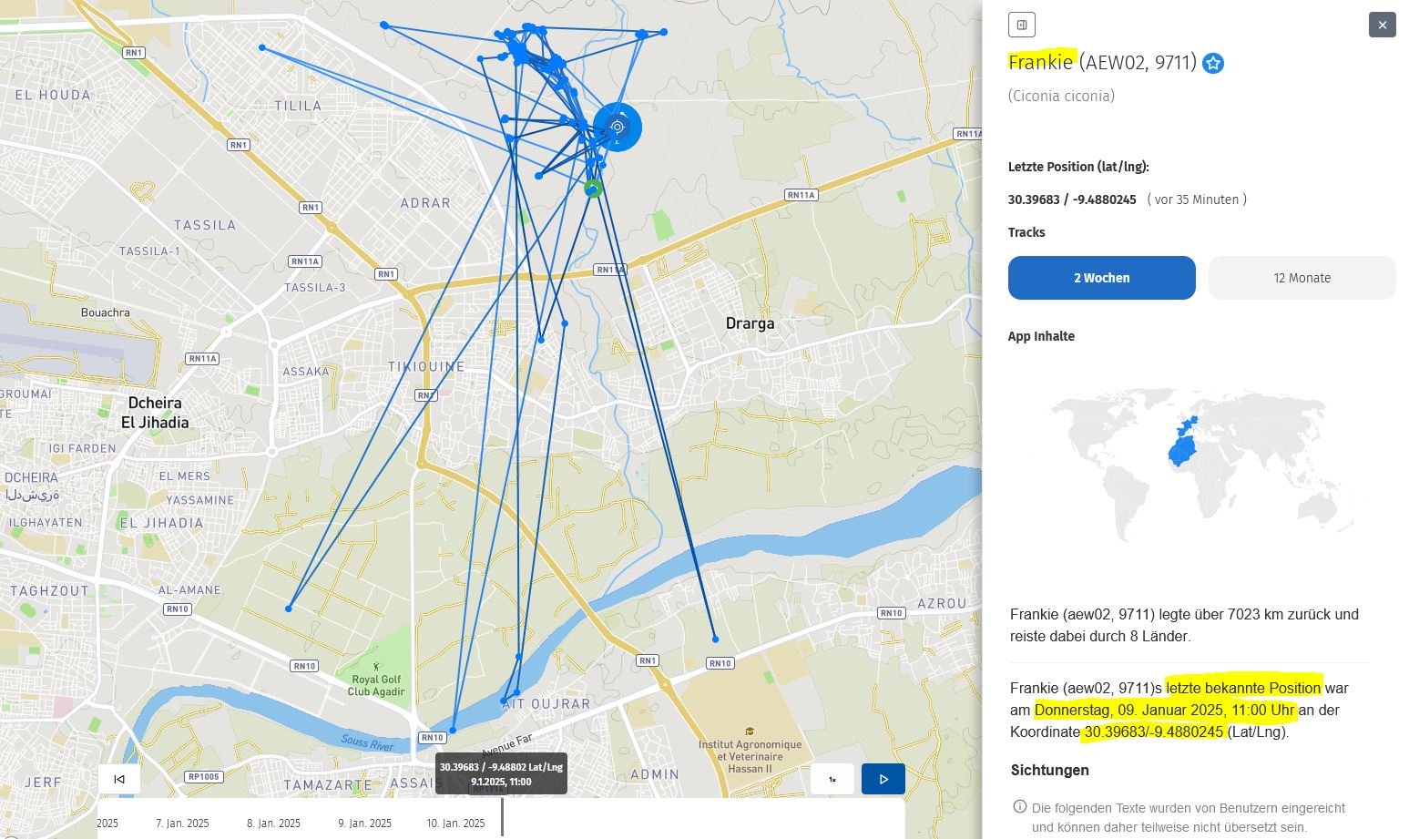 Wenigstens kann Walsdorf1-2024 (AHH10) derzeit täglich in Mali geortet werden und regelmäßig auch Rainman (ACB45) in Marokko bei Khenifra.