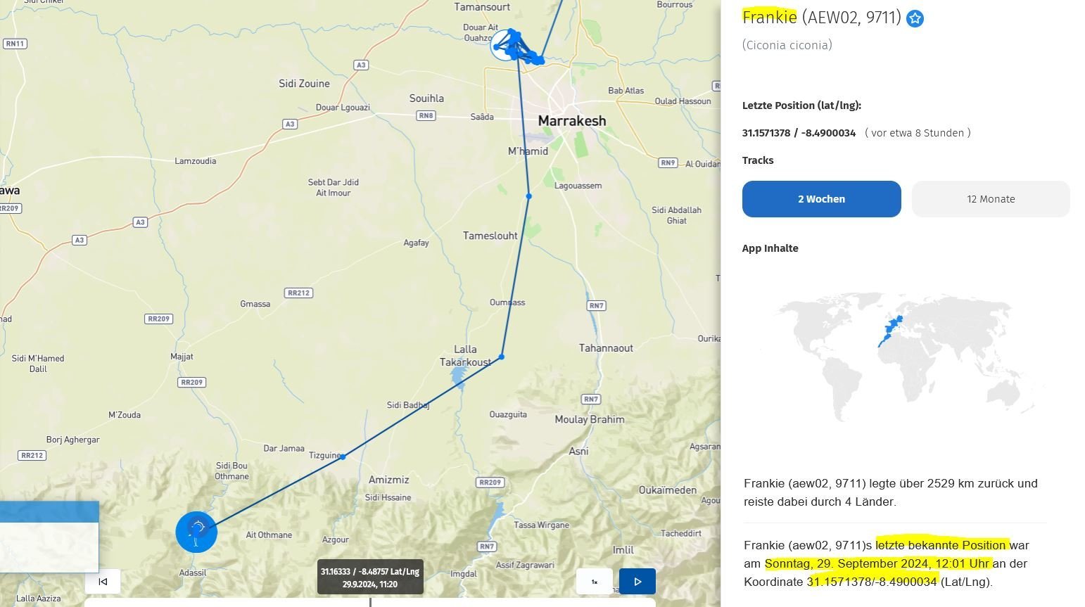 Re: Störche auf Reisen begleiten mit der AnimalTracker-App 2024