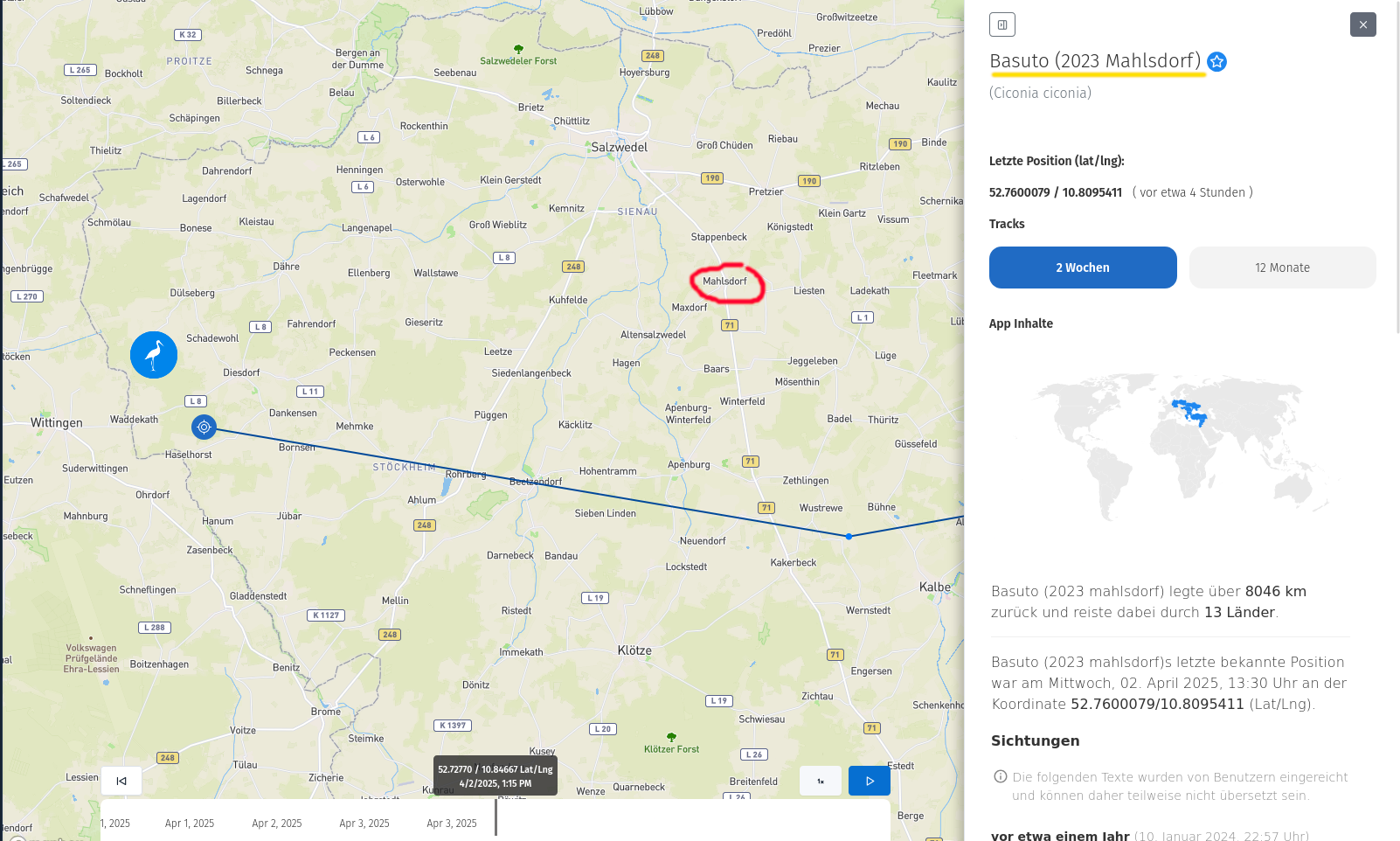 Und womöglich schließen sich Gabo und Claus daher eher kleineren Trupps an, die nicht die üblichen Routen der meisten anderen Störche nehmen,