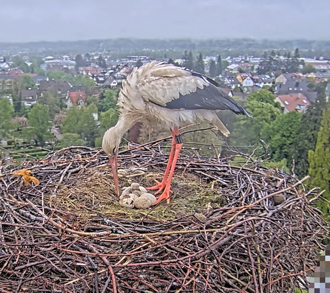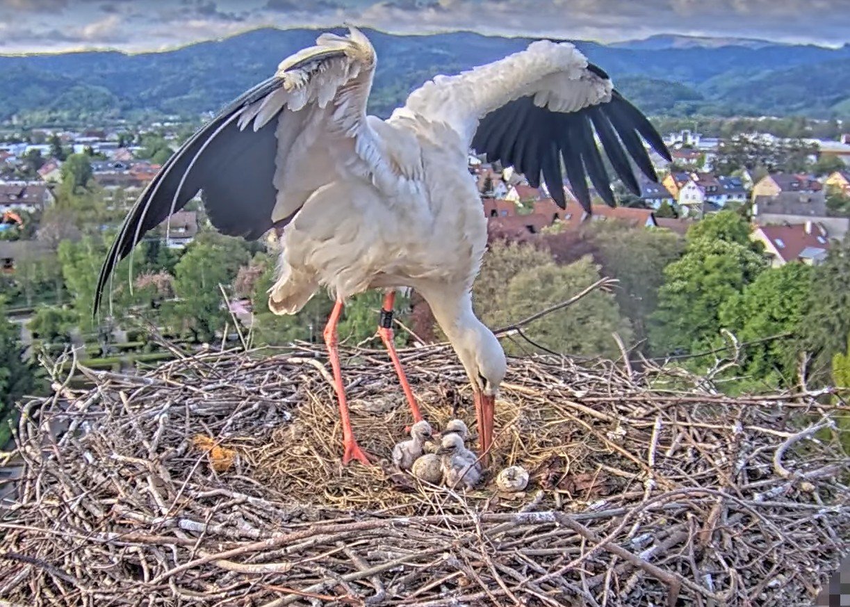 Das machte die frisch gebackenen Storcheneltern Ulla und Edgar verständlicherweise zeitweise etwas nervös, denn im Nest gab es ja inzwischen zwei frisch geschlüpfte Jungstörche 🐥🐣 und noch drei Eier, die bebrütet werden müssen. 🥚🥚🥚