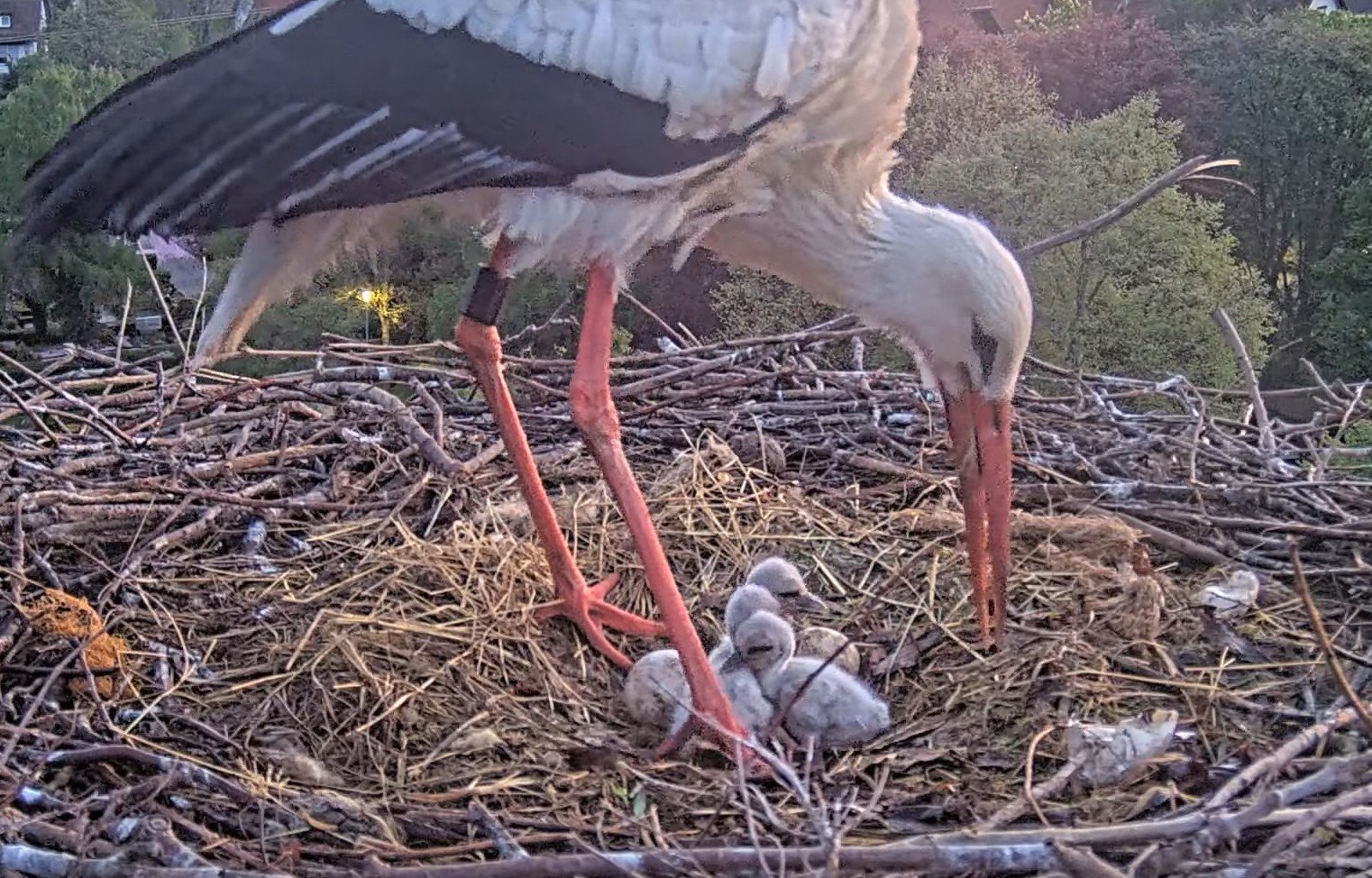 17:28 Uhr: Und noch besser, wenn beide Elternteile im Nest sind, dann wird umso eifriger geklappert.