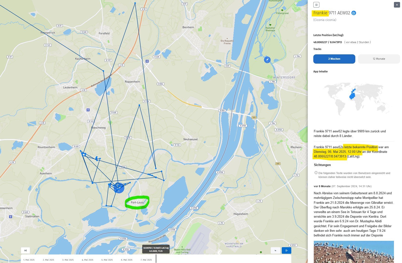Von meinen Favoriten gibt es nichts Neues zu berichten. Florians Sender muckelt mal wieder, Shacklton und Marina sind noch immer in Frankreich westlich von Straßburg, und Nina zieht seine Kreise weiterhin nahe Marburg.