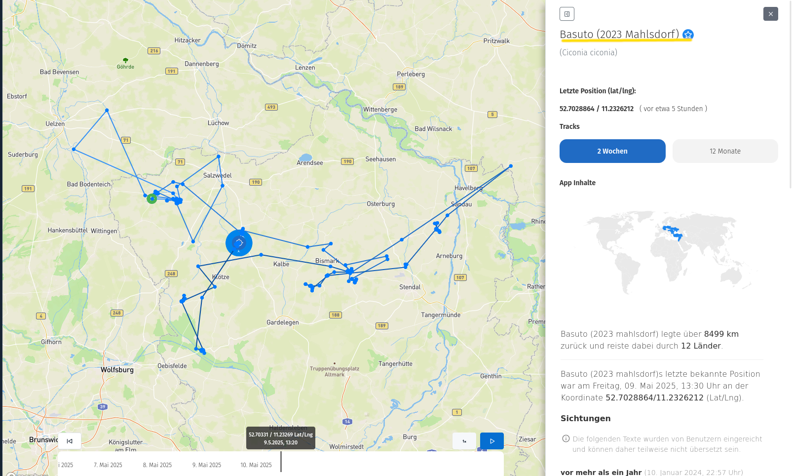 Gerne geschehen, Mathias ...Mathias hat geschrieben: Mi 7. Mai 2025, 12:37Liebe Elisa, vielen Dank für den schlagenden Beweis aus der Movebank, dass Gambia wirklich teilweise über Wasser geflogen ist!![]()