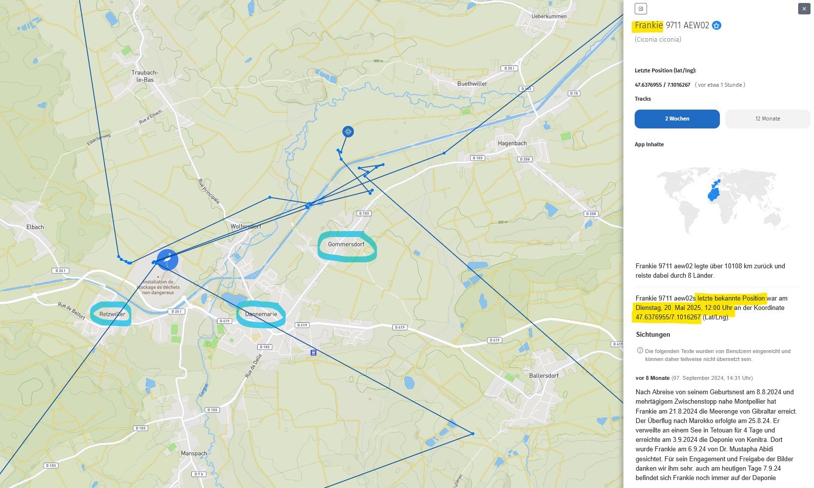 Deshalb hatte ich doch das Moorgebiet erwähnt, weil ich denke, dass er dort (trotz der Trockenheit in vielen anderen Gebieten) wohl am längsten eine Nahrungsgrundlage findet.