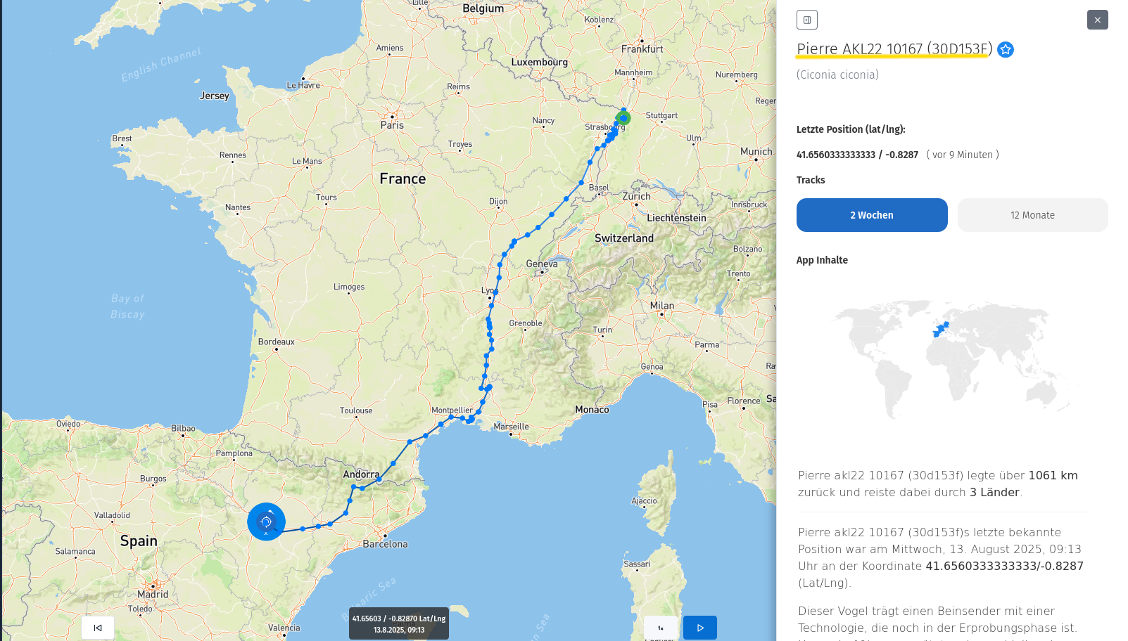 Leider vergeben wir für unsere besenderten Edelsteine keine Patenschaften. Es war für uns ein besonderer Moment, diese selber besendern zu dürfen, und so haben wir diese für uns doch vorbehalten wollen, in der Hoffnung, dass diese eine lange Reise vornehmen dürfen. Sie haben ja nun allesamt ein Handycap und es wäre schade, wenn ein Pate doch zu früh leiden würde.... Und ja, die Beinsender werden gewiss ebenfalls nicht immer für eine regelmäßige Berichterstattung sorgen, wie wir es von den Rücksacksendern gewohnt sind.MaSch hat geschrieben: Di 12. Aug 2025, 20:08 Das ist so herzerwärmend, vielen Dank für den Bericht und eure tolle Arbeit![]()