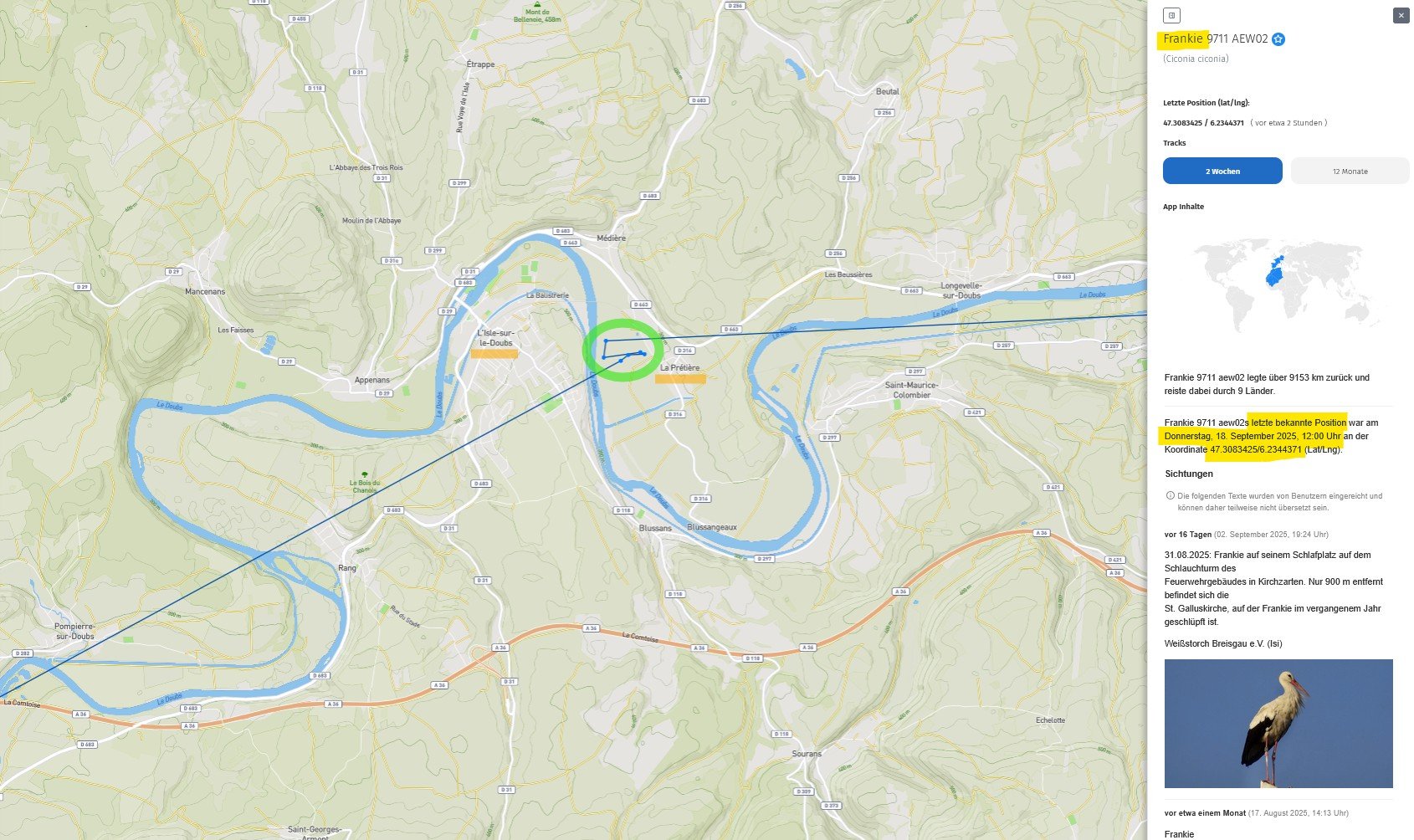 Re: Störche auf Reisen begleiten mit der AnimalTracker-App 2025