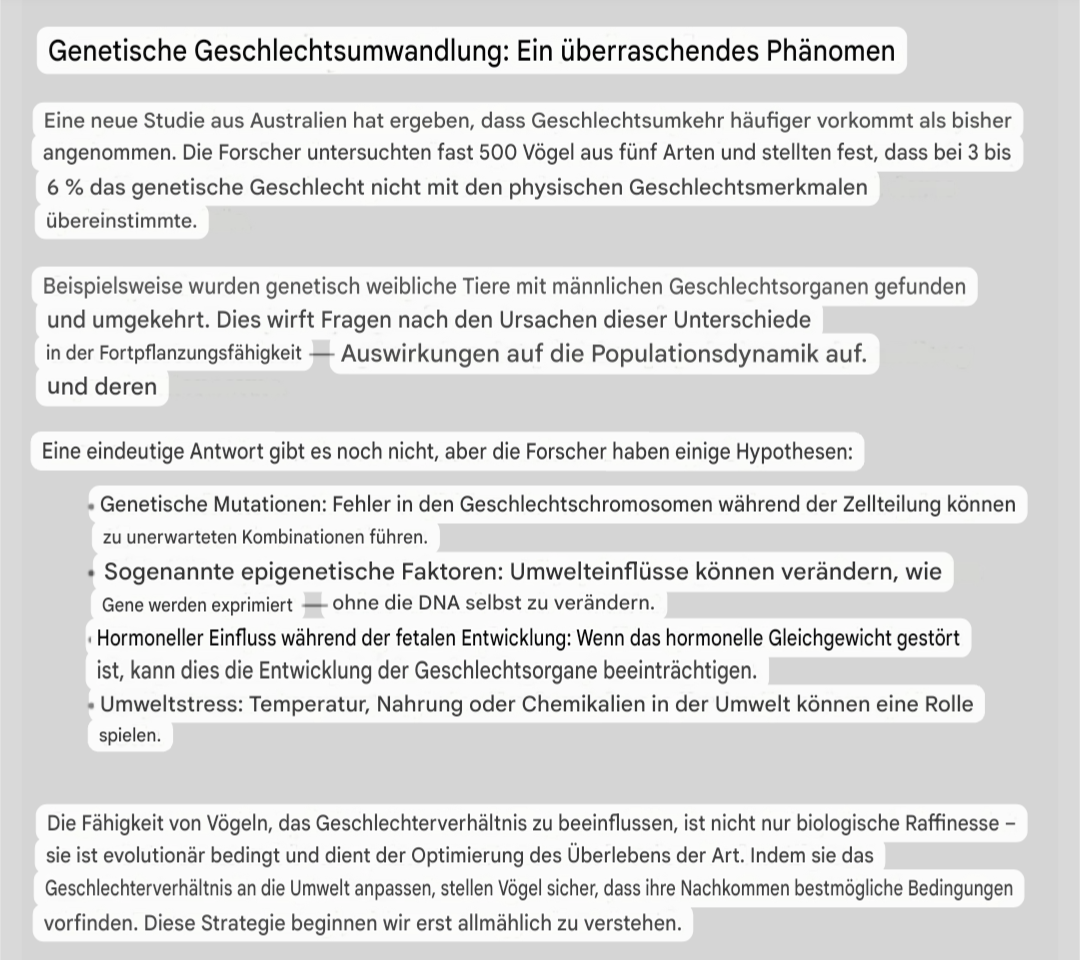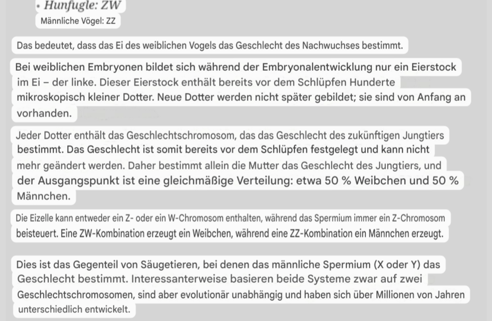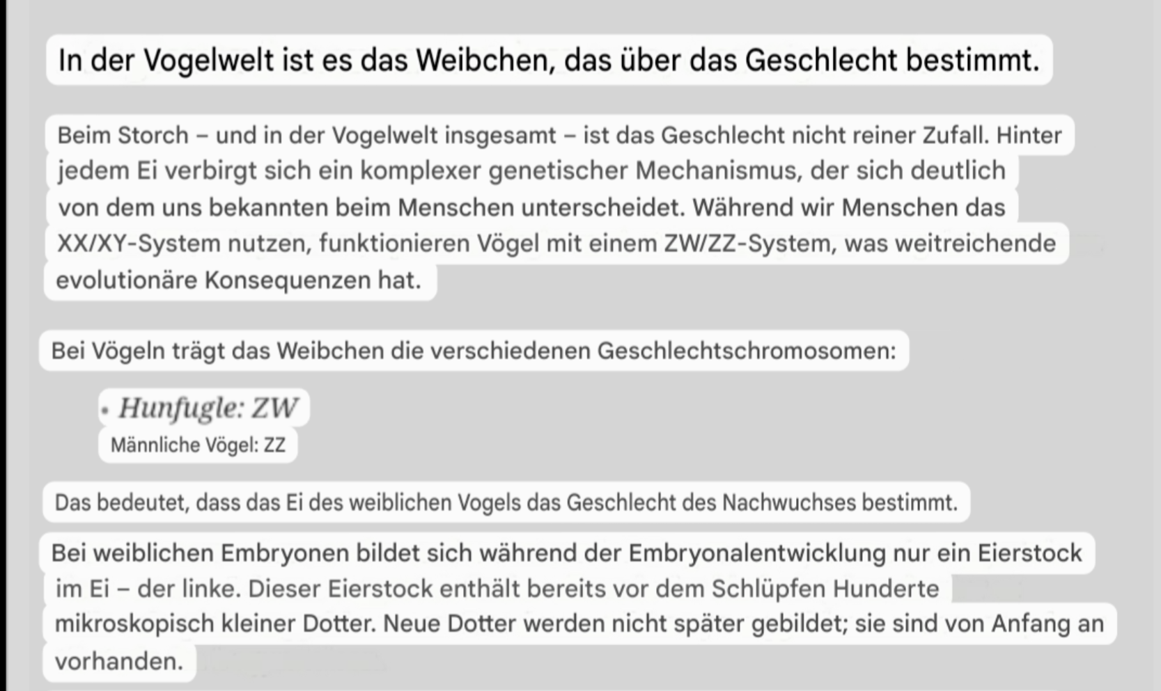 In einem Mitgliedsbrief von Storkene.dk fand ich einen interessanten Bericht darüber. Anders als bei Menschen, bestimmt das Weibchen bei den Vögeln das Geschlecht.