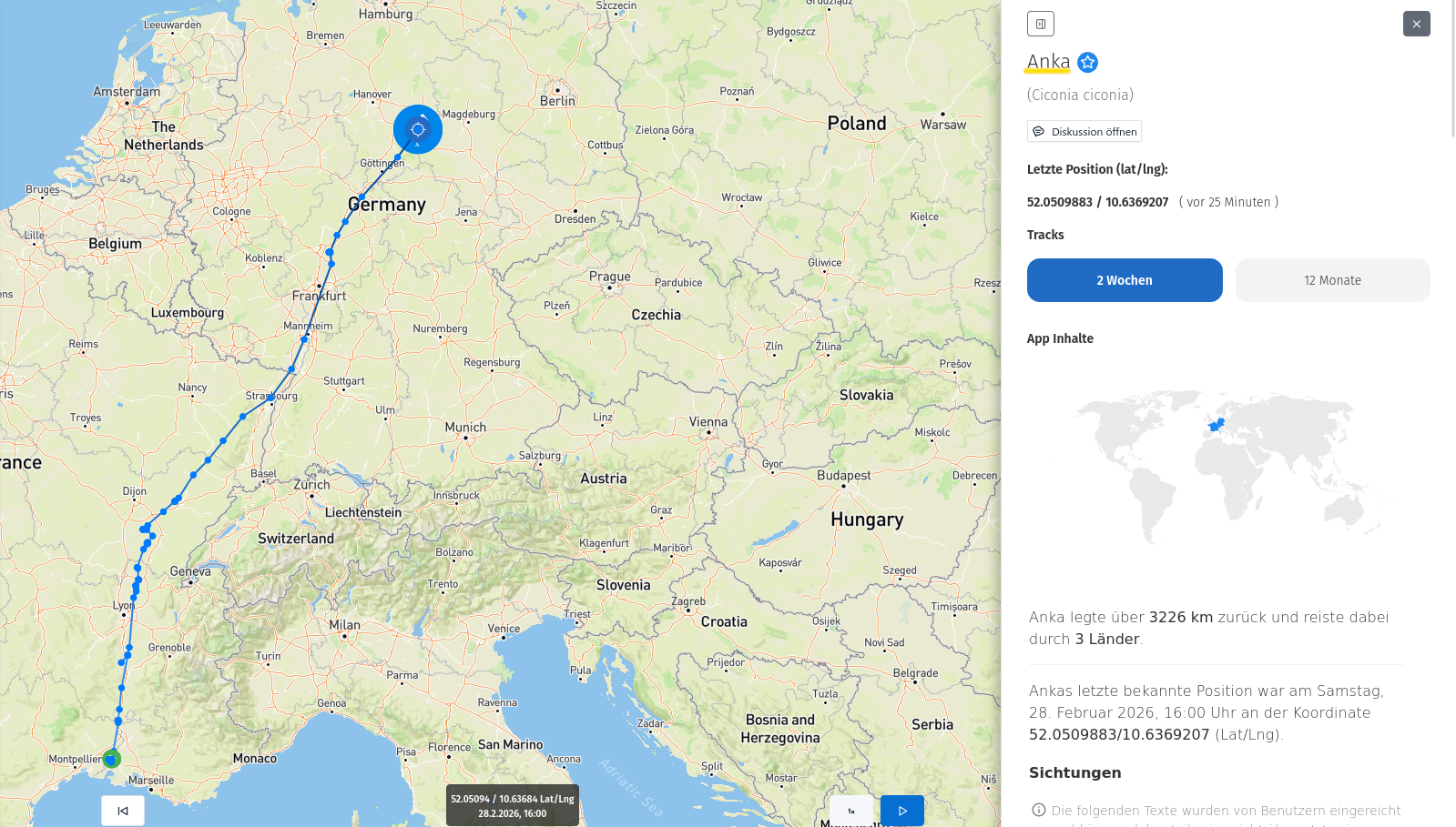 Re: Störche auf Reisen begleiten mit der AnimalTracker-App 2026