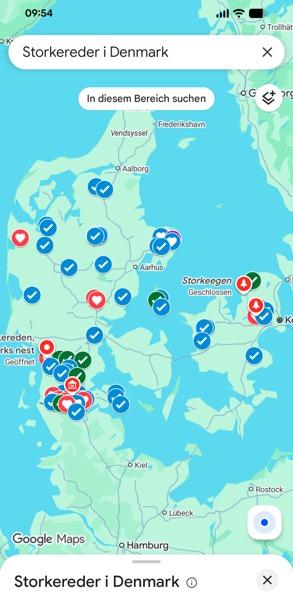 gestern kam unser Storch Thorkild im Nest in Smedager um 15:58 an.