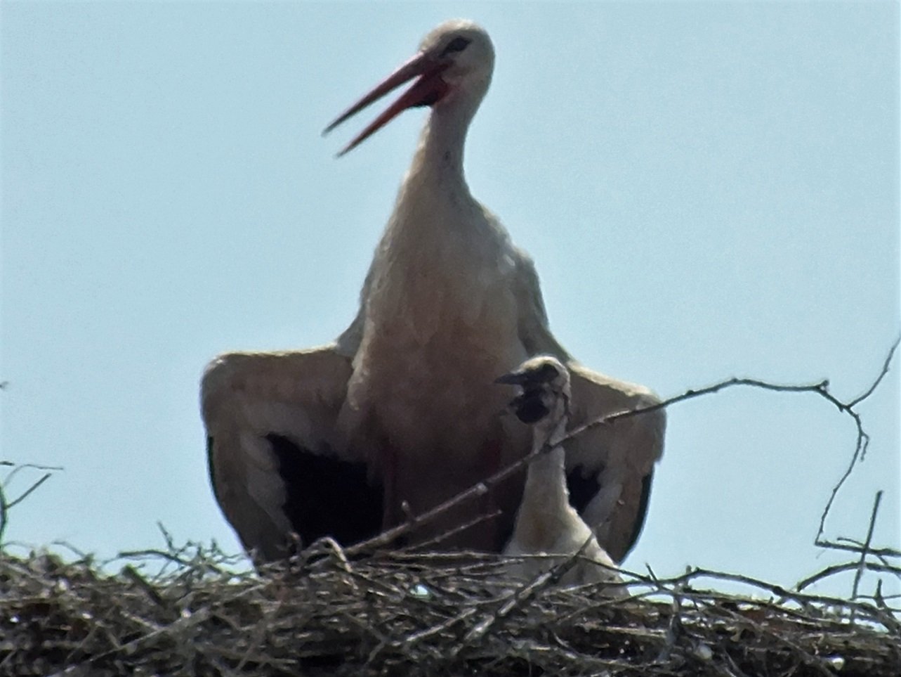 In Wermsdorf hat ein neues Paar mit einem bisher bei uns unbekanntem polnisch beringten grünen Ringstorch ein Nest auf einem Strommast anfgefangen.