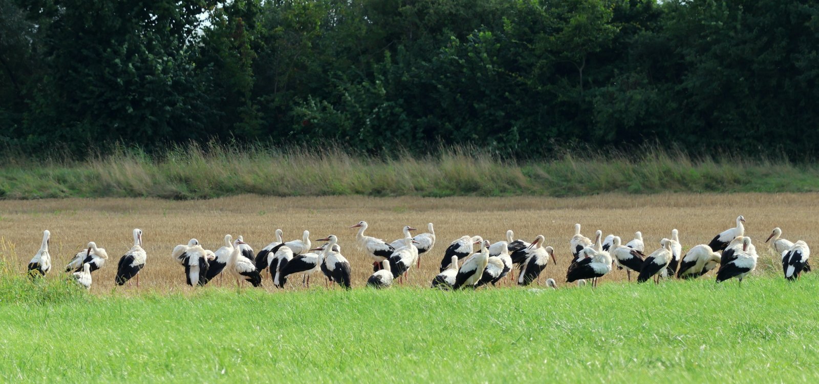 Pinipon hat geschrieben: Mo 4. Aug 2025, 13:32 gestern sah ich im AT, dass die Senderstörchin Gudrun AKL13 10187, die dieses Jahr in Iffezheim bei Baden-Baden geschlüpft ist und diesen neuen Beinsender trägt, ein kleines Stückchen weiter Richtung Süden gekommen und zu der Truppe von Unzhurst2 dazugestoßen war, die sich nach wie vor noch hier in der Nähe von Offenburg-Griesheim aufhält. Ich bin natürlich ins Auto gejumpt und hingefahren, es war ein unheimlich schönes Bild diese große Gruppe an Störchen zu sehen, nur leider hielten sie sich auf einer sehr großen Wiese auf und für mich gab es keinerlei Möglichkeiten mich zu verstecken, daher kam ich nicht nah genug ran um halbwegs gute Fotos zu bekommen, aber das Wichtigste ist, ich habe Gudrun ausmachen können.