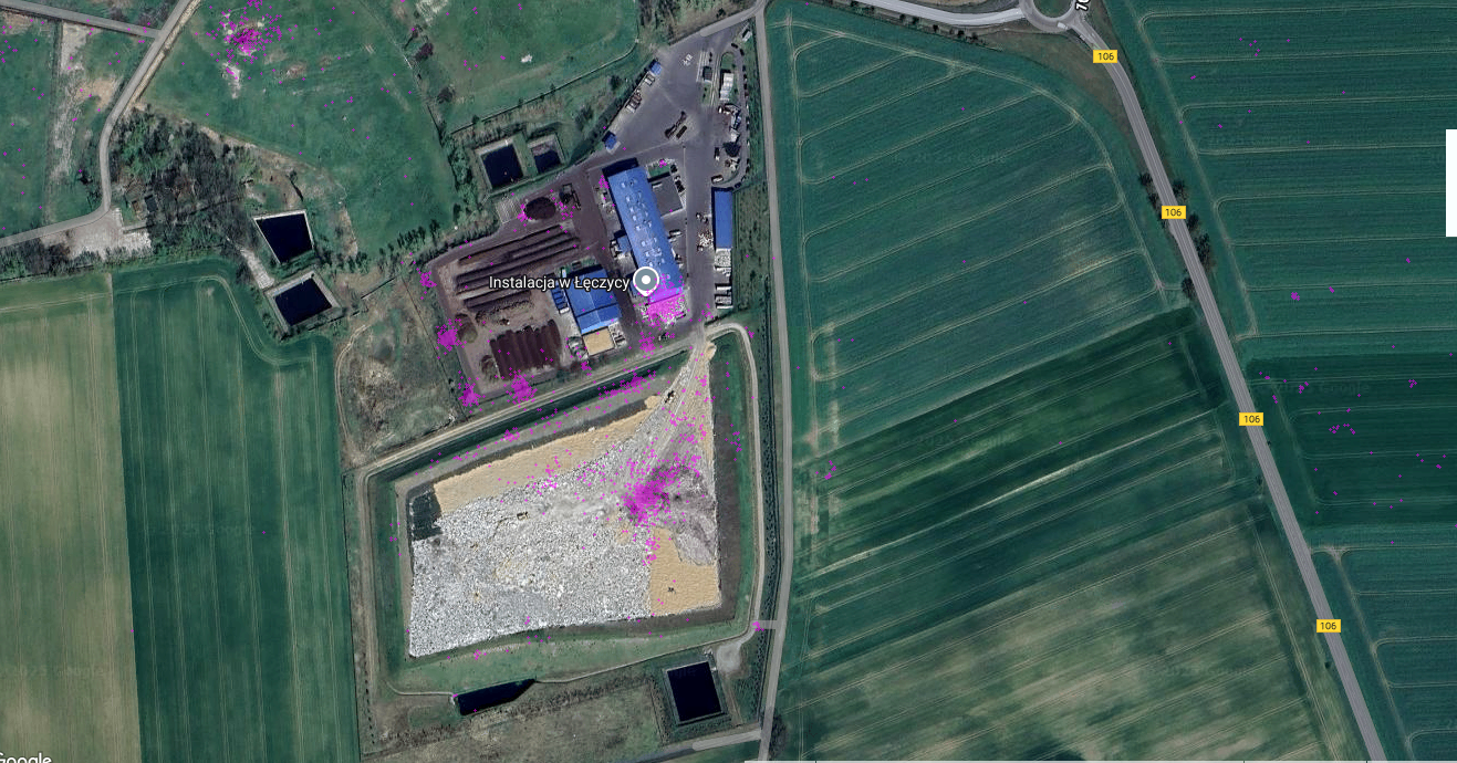 Genauer erkennt man es hier; scheinbar ist er auf einem Recyclinghof (o.dergl.).