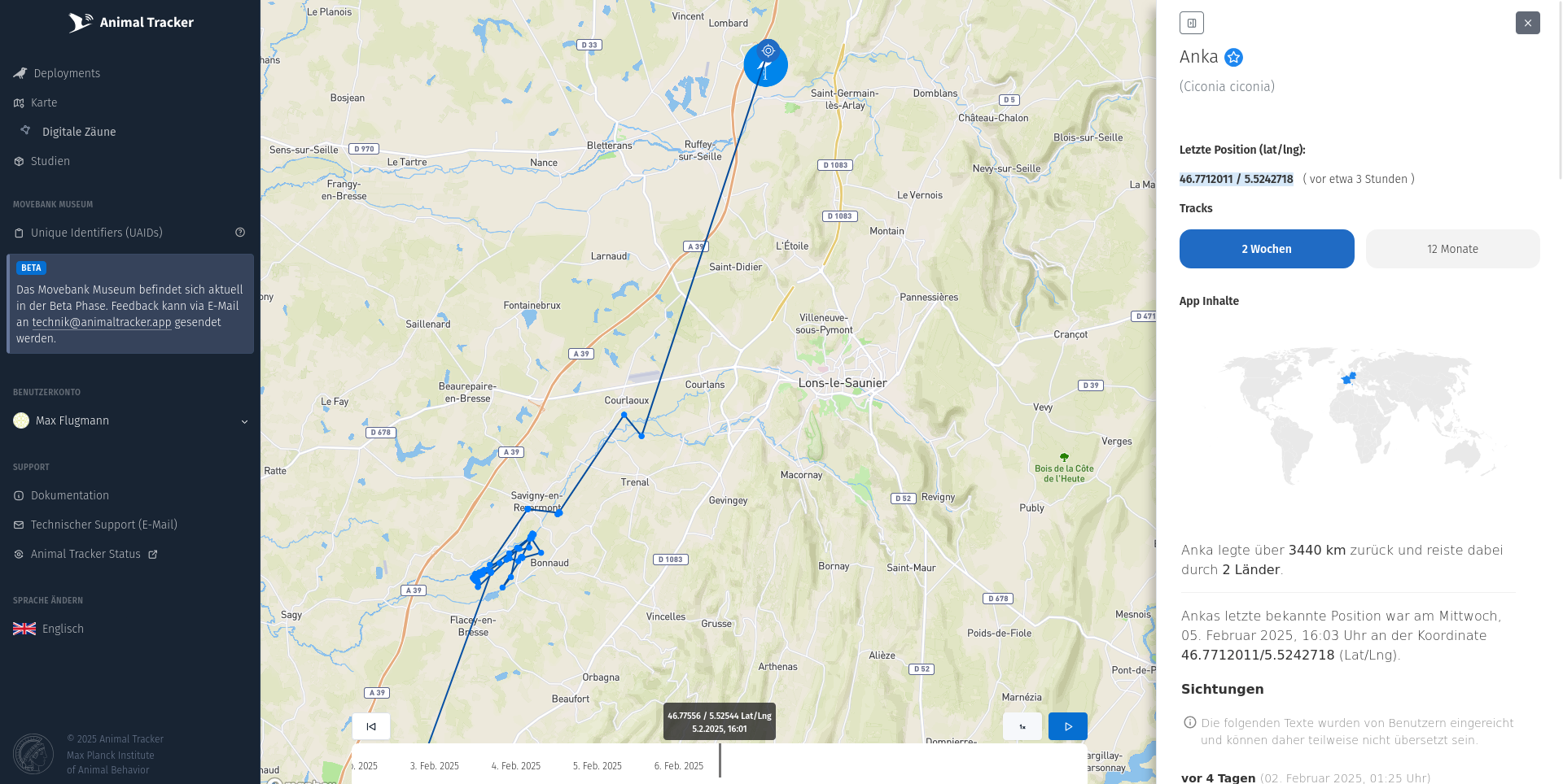 Re: Störche auf Reisen begleiten mit der AnimalTracker-App 2025