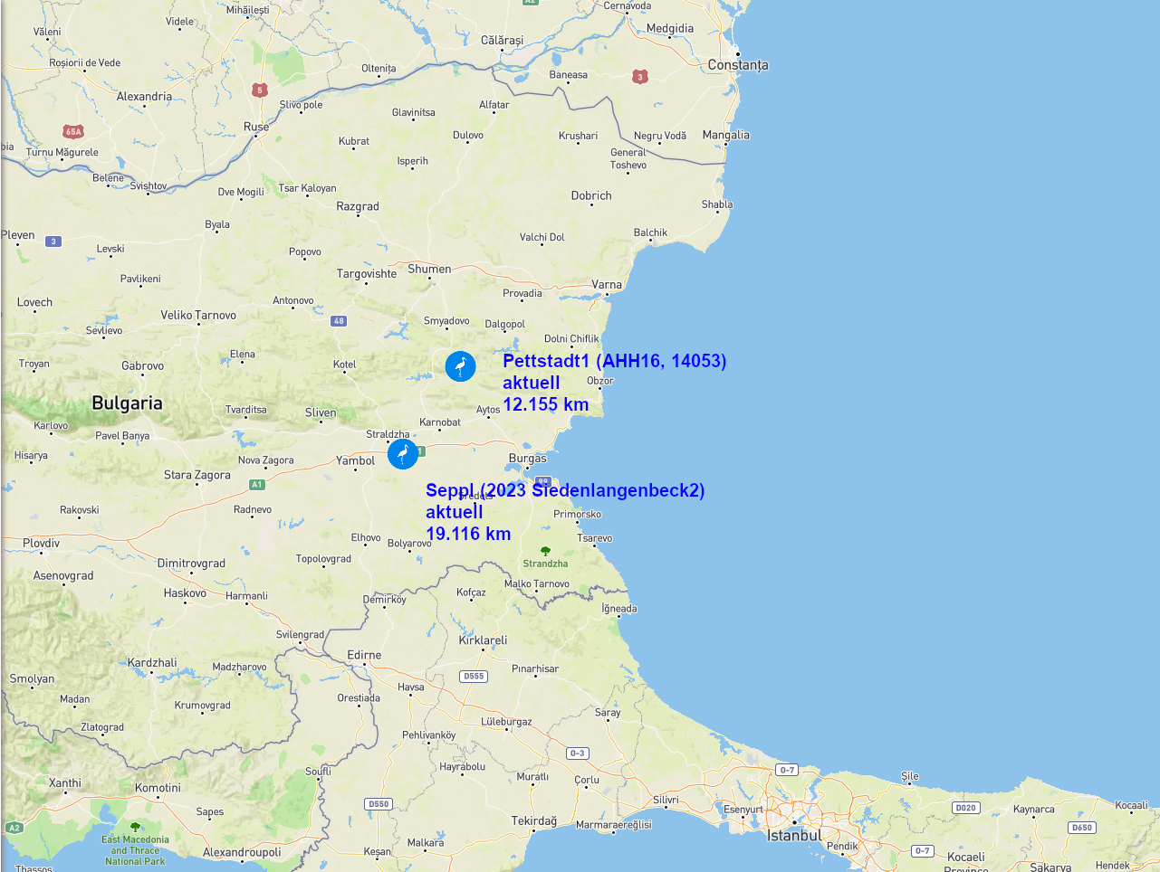 Marianne hält sich genau in dem Bereich (großräumig) auf, wo sie fast den gesamten Sommer 2025 verbracht hat. Ich frage mich, ob sie überhaupt noch weiter nach Norden fliegen wird, oder ob sie dauerhaft in der Türkei bleibt.