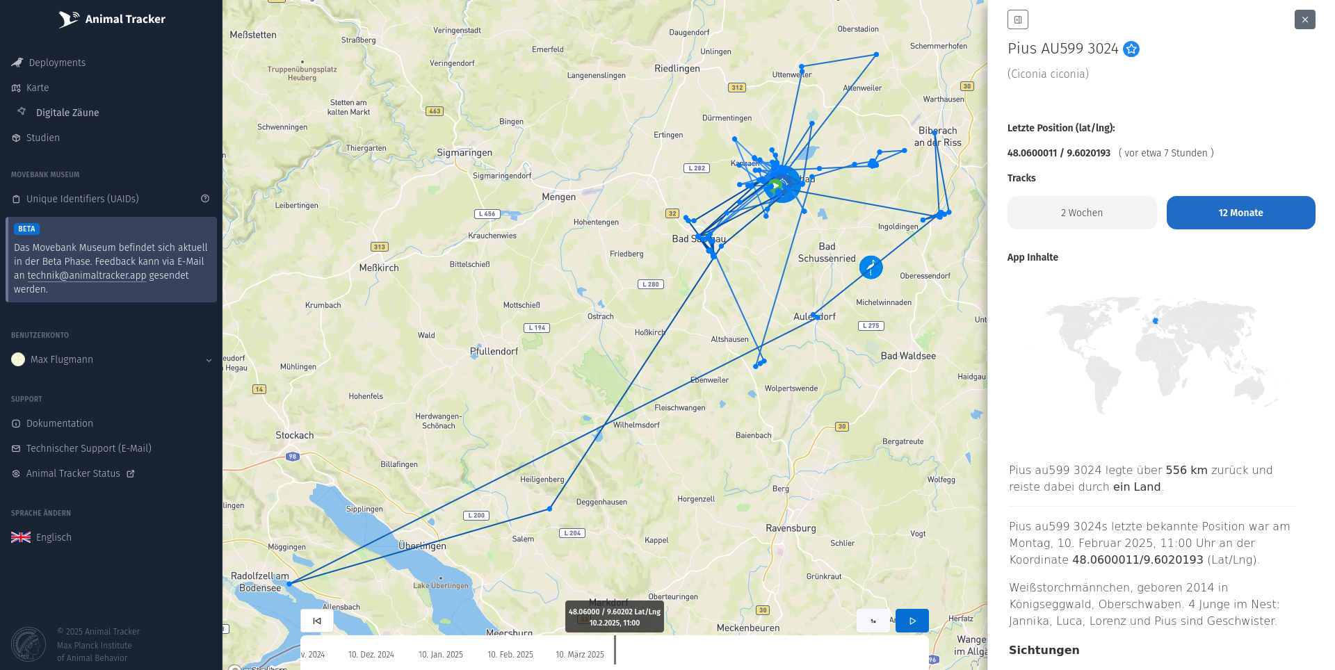 Elisa hat geschrieben: Di 11. Feb 2025, 14:08 Bin gespannt, was der AnimalTracker bzw. die Movebank heute Abend, nach Abschluss des großen Updates, uns so alles entdecken lässt ... ;)