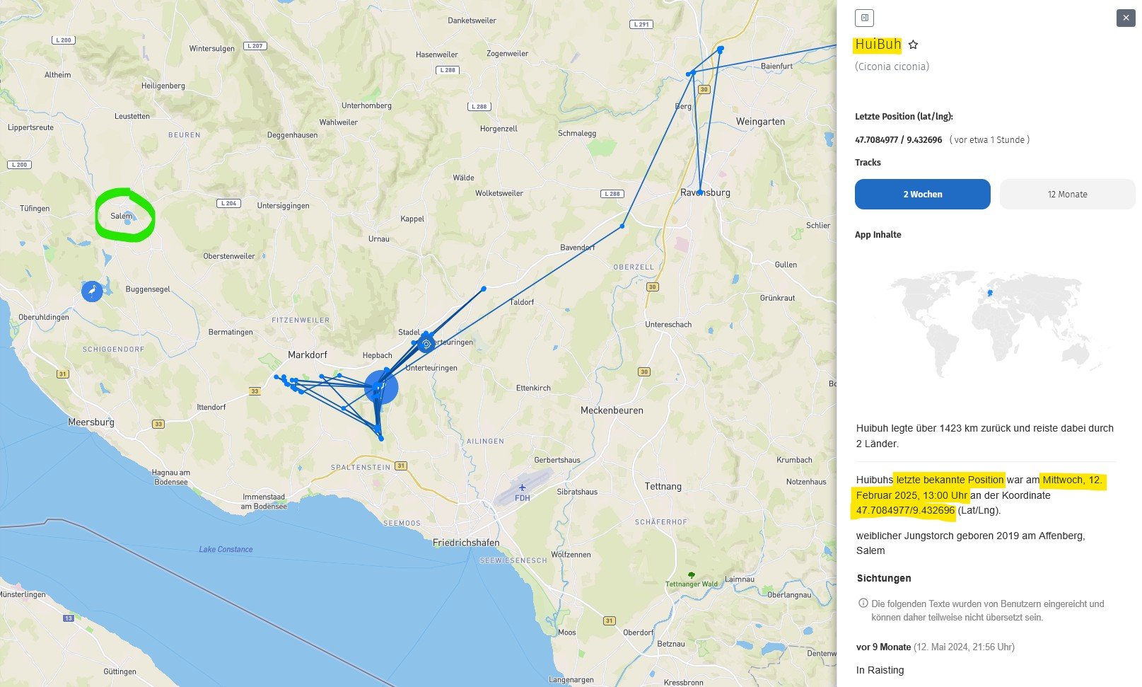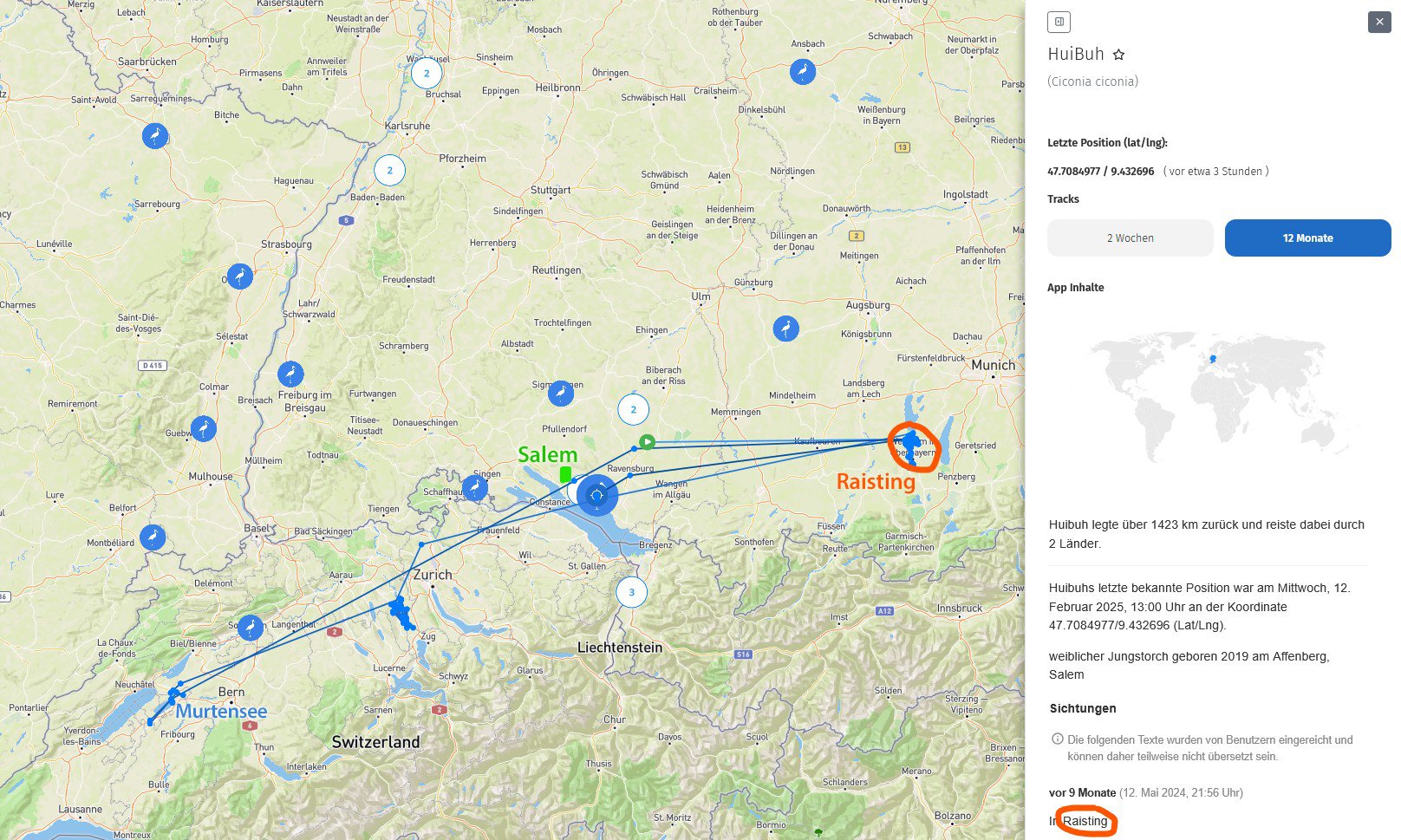 wahrscheinlich habt Ihr es schon entdeckt - so nach und nach sind heute Nachmittag die Daten „ unserer“ Senderstörche im AT eingeflossen. Es ist gerade zzt. wirklich spannend, wo man nun den einen oder die andere entdeckt. Da ich leider überhaupt nicht technikaffin bin, ist es für mich eine groẞe Hilfe und Zeitersparnis, dass ich mich immer auf Eure tollen Aufbereitungen verlassen kann. Vielen Dank dafür ! Ich freue mich auch über jeden neu genannten Senderstorch
