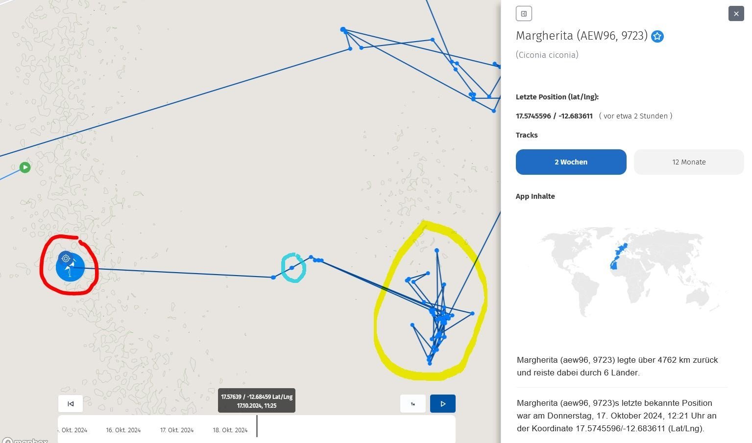 Gute Frage!Frank B hat geschrieben: Mi 16. Okt 2024, 17:03Etwas komisch finde ich Atila. Wie beschrieben deutet das Bewegungsmuster auf einen Unfall ähnlich Milli und Maxi hin. Allerdings senden die Sender von den beiden letztgenannten noch immer. Warum sendet Atila seit 2 Tagen nicht mehr?