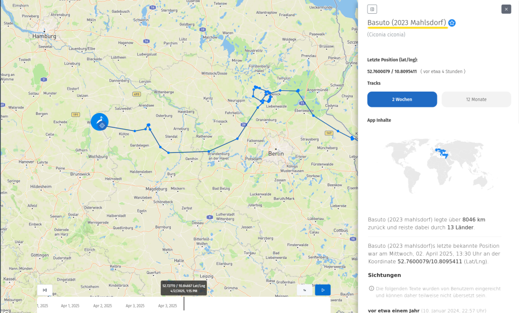 Und womöglich schließen sich Gabo und Claus daher eher kleineren Trupps an, die nicht die üblichen Routen der meisten anderen Störche nehmen,