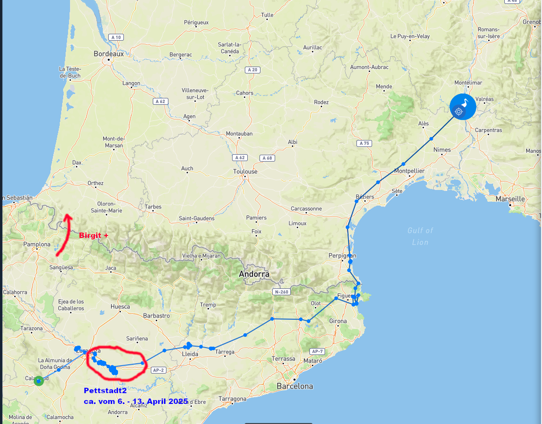 Und in dem von Dir erwähnten Nachbarort Heskem-Mölln im Ebsdorfergrund kann man im AnimalTracker erkennen - sofern man nicht das Kartenbild, sondern das Satellitenbild auswählt - dass sich Libi abends wohl dort auf einem Mast aufhält, auf dem offenbar ein Storchenhorst montiert wurde. Zumindest sieht man einen Schatten davon auf dem Satellitenbild.