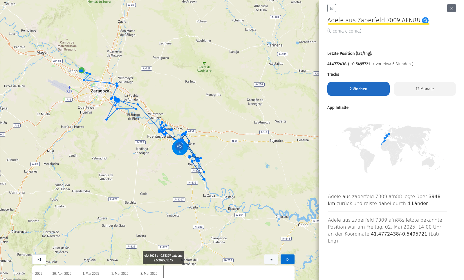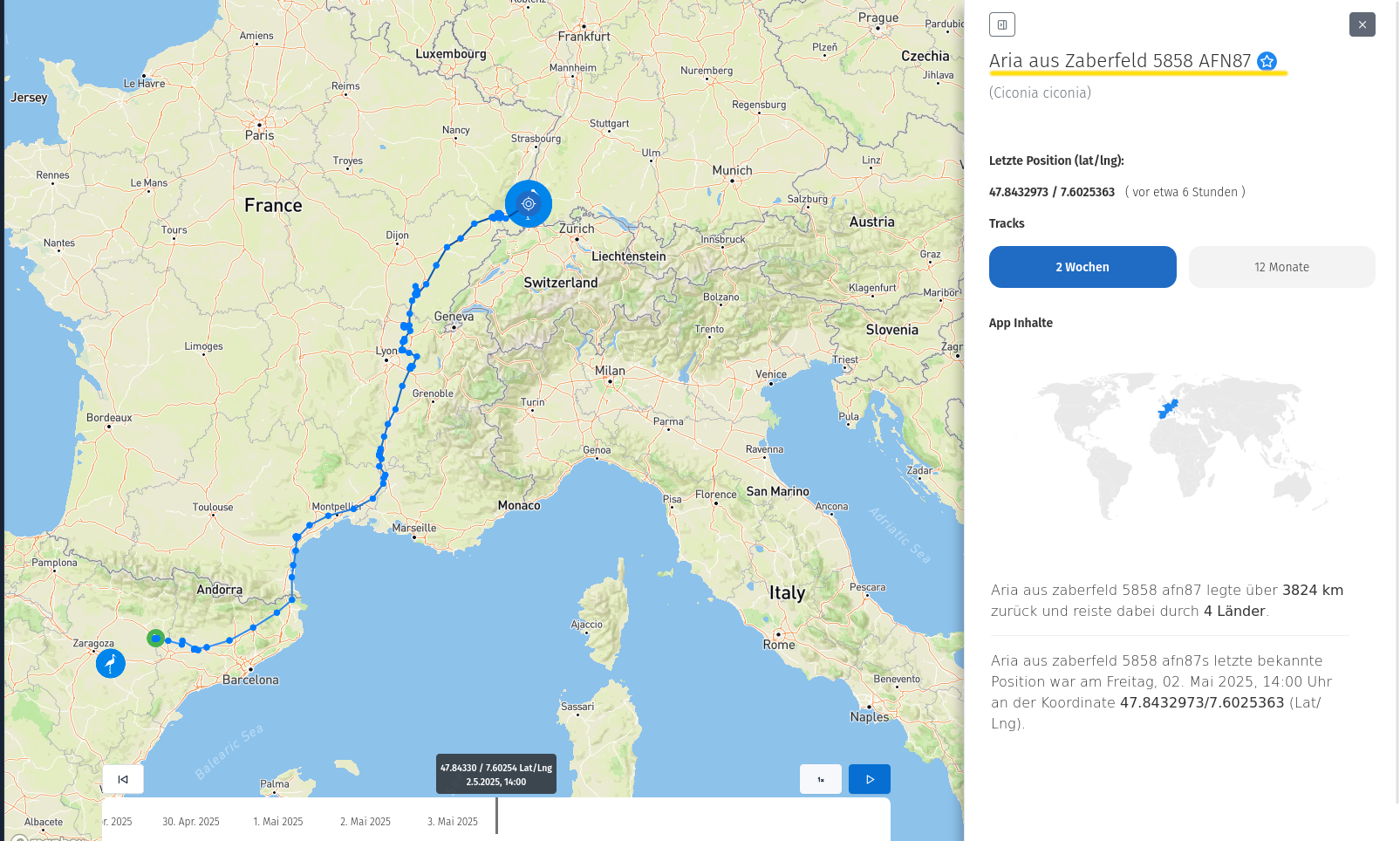 Re: Störche auf Reisen begleiten mit der AnimalTracker-App 2025